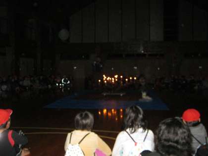初日の夜は、ボーンファイヤーです。プレイホールで輪になり、ろうそくを囲んでみんなで“つながり”を深める活動をしました。