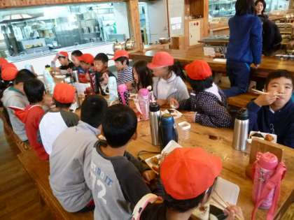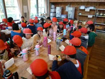 1時すぎに帰ってきましたが、かっぱの始末や濡れている服を着替えてからの昼食になったので、おそめのお昼ご飯になりました。おにぎり2つとおかずです。子どもたちはおなかぺこぺこで「これでは足りないわ」と言っていました。食欲旺盛。