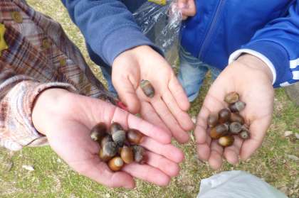 いろいろなどんぐりを見付けていました。