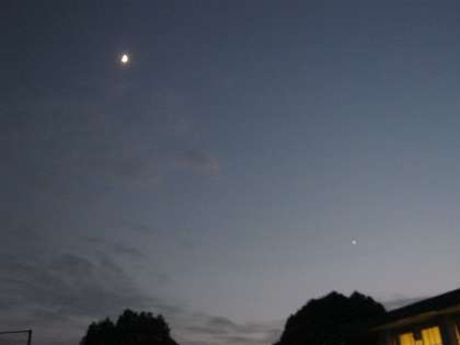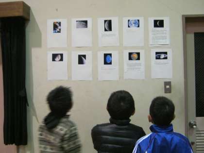 太陽系の話を聞いたり,展示された写真を見ている間に,外が暗くなってきました。今日は,肉眼でもはっきり見える数年ぶりのいい条件でした。