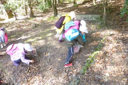 キノコを見付けて,大喜びでした。
