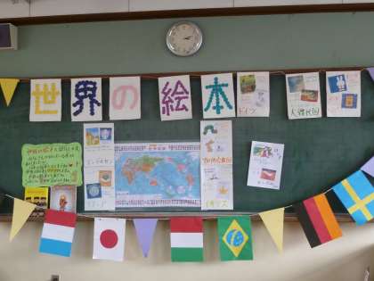 放課後、図書館をのぞくと、3年生の子どもたちが数名本を読んでいました。男の子が大きな絵本を読んで聞かせていました。「読んでって言ったら、こうして読んでくれるの」と楽しそう。本に親しんでいる姿を見て、うれしくなりました。