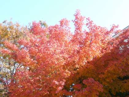 大宮校は、樹木が豊かにあります。降り注ぐような落ち葉の後始末は大変ですが、青空に美しく映える紅葉は、見ていて飽きません。きれいだなあと思わずつぶやいてしまいます。これから冬に向かっていくけれど、美しい紅葉が一日でも長く楽しめますように。