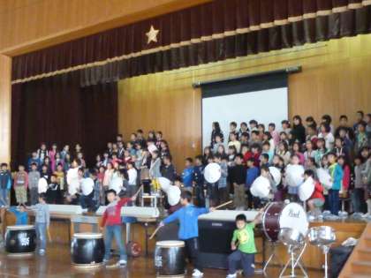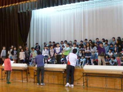 体育館から聞こえる元気な声に誘われて、のぞいてみました。連日、学習発表会に向けての練習をしている子どもたちです。