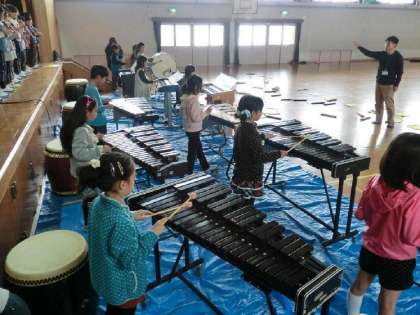 当日に使う楽器を体育館に運んで,演奏しました。