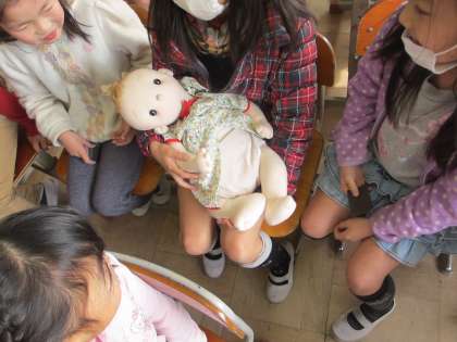 授業の最後には,生まれたての赤ちゃんの平均体重・身長の人形をだっこして終わりました。「おもいなあ!」と大事そうにだっこをしていました。