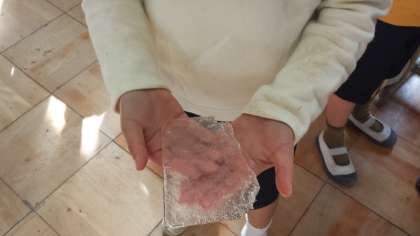 その氷をもって,遊びました。「つめたいーーー」や「われへんな〜」などの声が聞かれました。