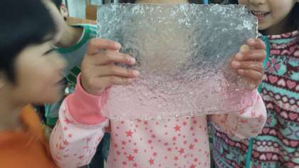 待ちに待った氷。容器にうすくはっている子や,立派な氷ができている子がいました。