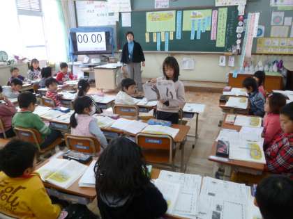10日の月曜日の5時間目、1年生全学級で校内の研究授業を行い、全教職員が授業の様子を参観しました。国語科の「どうぶつの赤ちゃん」という教材を使って、動物の赤ちゃんとお母さんの様子をくらべて読んでいく学習です。