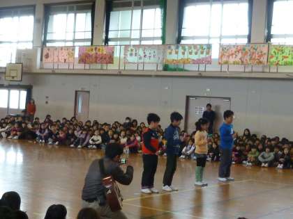 それぞれの学年からお祝いとお礼の言葉が6年生に贈られました。6年生も、本当にいい顔をして後輩たちのメッセージを受け止めていました。