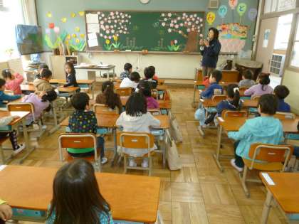 クイズを出しました。「みんなの担任の先生の名前は?」「○○先生」どの子も、担任の名前はしっかり憶えてくれたようです。