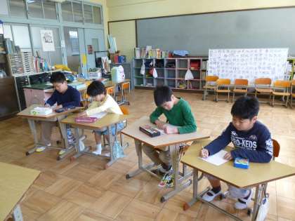 そらいろ学級に行くと、一日の予定を確かめ合い、よい姿勢で机に向かっています。お互いの良いところを認め合いながら、がんばっていましたね。