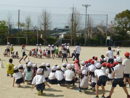 運動場では、4年生が学年体育。クラス対抗のリレーを楽しんでいました。よいお天気で、みんなの声援が運動場に響いていました。