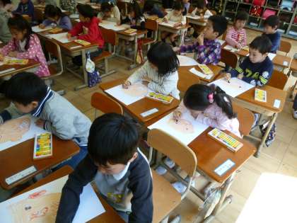 「うまく描けない」「先生、どう?」など、いろいろな思いをもって描いています。