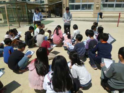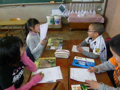 4年生の教室では、桜を観察して気づいたことをグループで発表し合っていました。今年度も、グループでの学習活動を大事にしていきます。