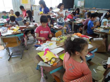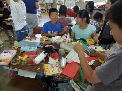 図工では「ランチをどうぞ」という学習を始めました。いろいろな材料を使って,お弁当を作ります。材料をいかして,おもいおもいのおかずを作っています。身近な材料がどんなおかずに変身するか楽しみです。