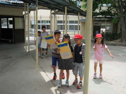 「ここは、先生のいはるお部屋です。」「ここで、本を借りられますよ。」とたくさん教えてもらい、おかげで学校にくわしくなりました。