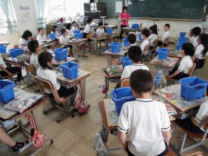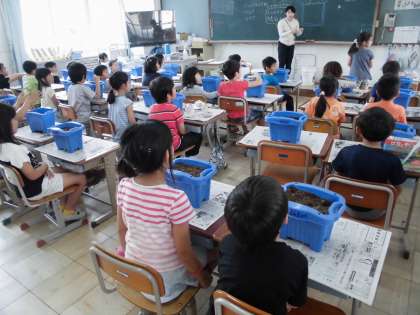 2年生は生活科でミニトマトを植える準備をしていました。肥料は、どんなふうにあげたらいいのかな?土に埋めるのにどれくらい穴をあけるのかな?先生の説明を聞いていました。これから水やりもしていかなくっちゃね。