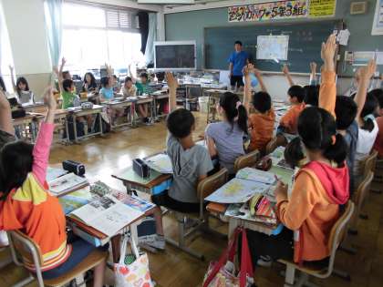 5年生の授業の様子も見に行きました。暑くなってきているのですが、5年生の授業には感心しました。手のあげ方が違っています。意欲を感じます。そして、ほぼみんなが手を挙げようとします。自分の意見をちゃんと伝えようとするところがえらい。