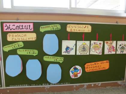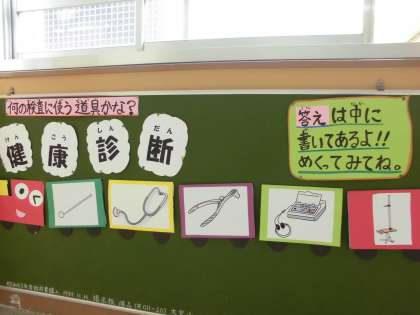 保健室では、掲示物でも、子どもたちに自分の健康について関心をもてるように工夫しています。