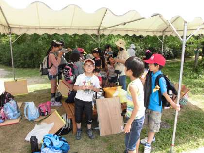 保護者のなかには、お子さんと一緒に写生をされていて、親子で写生っていいなあと思いました。お母さんに日傘をさしてもらって絵を描く様子も。