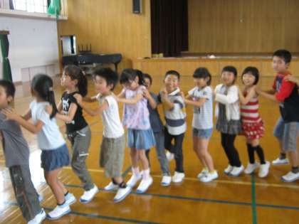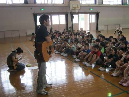 いよいよ来週の月曜日にみさきの家に出発します!!最後のキャンプファイアー練習を5時間目に行いました。今日はそらいろ学級の梅原先生と1組の寒川先生の生ギターで歌を歌いました。その後,フォークダンスの練習をしました。
