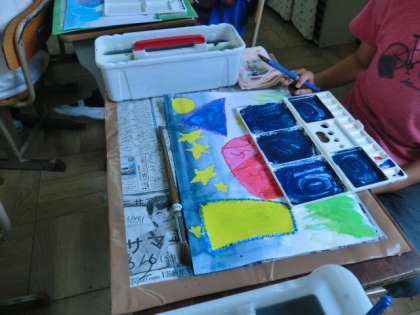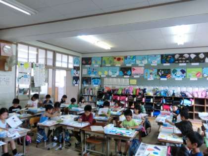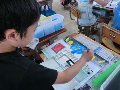 だんだん薄い色にしていくのは少し難しそうでしたが,塗り終わると,子どもたちは「きれい!」「本当の夜空みたい!」とうれしそうでした。