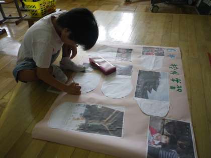 そして,今日は校外学習に行った時のことを写真を見ながら思い出して「大仏が大きかったです。」「また行きたいです。」と,文を考えて書きました。