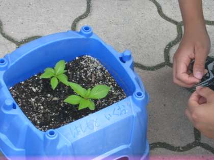 子どもたちが植木鉢に種をまいて,ひと月が立ちました。