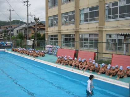 初日なので,まだまだ低い水位でしたが,プールサイドに一年ぶりに子どもたちの歓声が響きました。