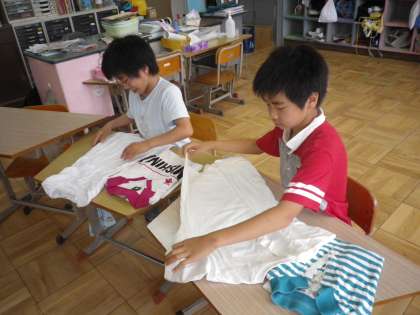 生単の時間は,クリーニング屋さんになってたくさんの服をきれいにたたみました。是非,体操服に着替える時の自分の服,家のお手伝いなどで,今日のようにきれいにたたんでほしいと思います。