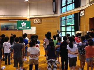 順序が違っていますが、今朝の様子です。朝の集いです。ちょっと眠そう?