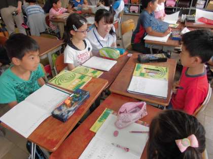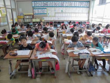 隣のクラスは、担任の先生が一緒に算数の授業を参観をされたので、10分程度、自習になったので、またのぞきに行きました。すると、とっても静かに自分の課題をがんばっていました。「花マル!」とほめました。頑張る3年生です。