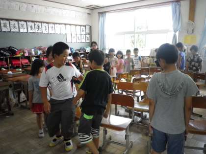 4年1組では,6年生の進行でいすとりゲームをしました。いすとりゲームは子どもたちの「何としてでも勝とう」という気持ちが伝わってきました。高学年の本気の前で低学年の子どもたちはなかなか勝ち残れませんでしたが,それも異年齢で遊ぶたてわりあそびならではの良い経験になったと思います。