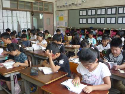 朝の読書タイムに,今日は,2校舎をのぞいてみました。静かな音楽が流れる中,みんな集中して読書をしていました。どんな本を読んでいるのか,見ていると・・・。難しい本に挑戦している子もいました。後1週間,楽しみながら読書に取り組んでいきましょうね。図書室にも来てくださいね。