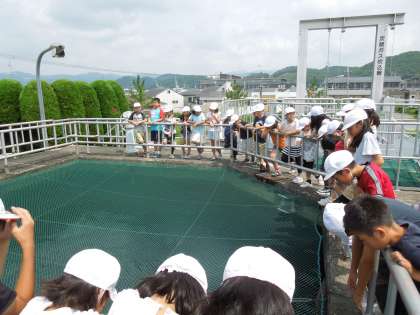 4年生の社会では「くらしと水」の学習をすすめています。今日は松ヶ崎浄水場へ行き,水道水はどのようにつくられているのかを見学してきました。