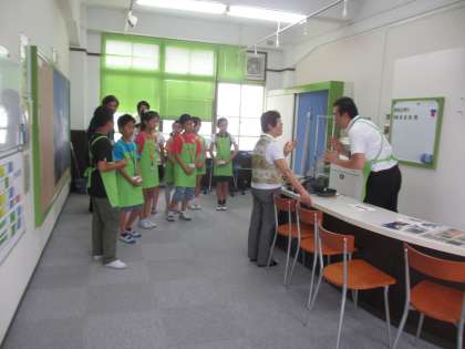 各ブースにわかれてはじめに行ったのは、社内会議です。ここでは、各企業で働いている方から実際に、企業が大事にしていることを教えてもらったり、あいさつ指導を受けたりしました。そして、お客さんを迎えられるように、開店準備も行います。働くのですから、お店のユニホームを身にまとうお店もあります。
