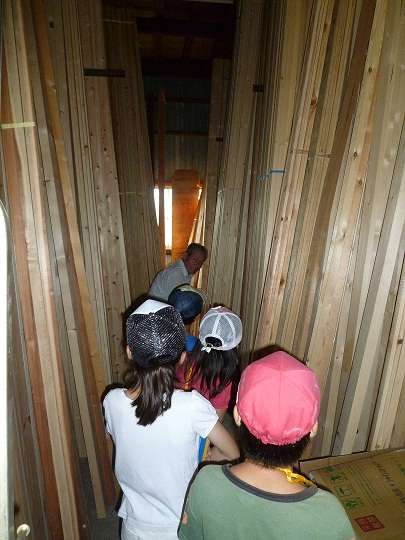 自分たちの家になることや,するどい歯がついたのこぎり機械で切ることを知り,