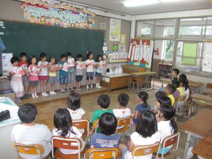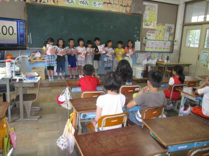 5月の連休明けに,国語の学習「きつつきの商売」で,音読のプレゼントを一年生にしたことがありました。