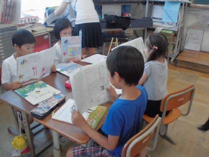みんな10冊以上読んでいるようです。スイミーによく似たお話もあったよと教えてくれました。お互いの感想をグループで交流し合いました。