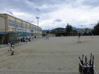 日曜日の運動場、威勢の声が響いています。