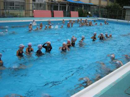 梅雨のあいまのプールです