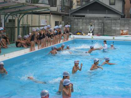 「25メートルを泳ごう」を目標にして、自分の得意な泳ぎで挑戦しました。