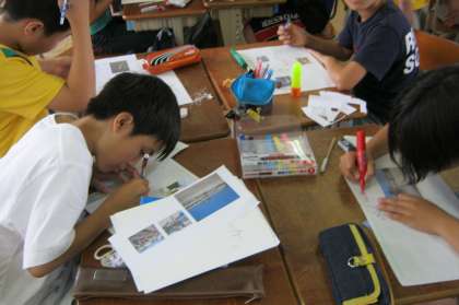 国語の学習で、地域のおすすめするところを話し合い