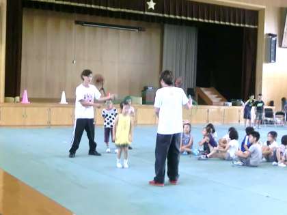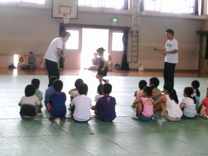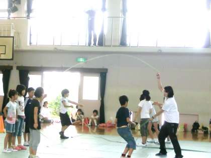 7月12日(土),本校体育館にて,PTA主催のダブルダッチ体験が行われました。参加児童は約50名でした。準備運動をし,いよいよダブルダッチです。跳べるかどうか不安でしたが,インストラクターのパフォーマンスチーム『MUKU』の方5名が丁寧に教えて下さり,初めての子どもも,上手に跳べることができました。二本の縄をタイミング良く回すのがコツのようですね。関係の皆様,ありがとうございました。