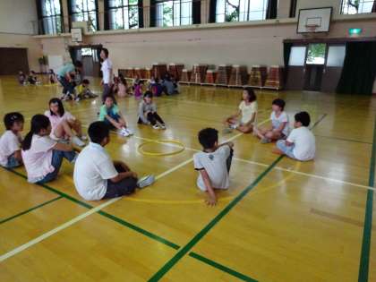 声をかけ合ったり,協力したりしながら,どのチームもフラフープくぐりができました。