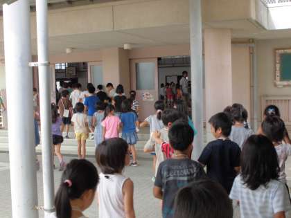 各教室で、ちゃんと子どもたちがそろっているのか確認します。この確認作業が、大事なポイントです。