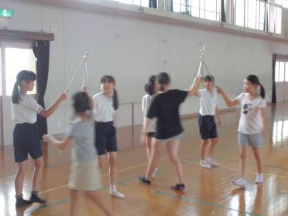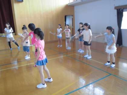 ダンス・バトンのクラブの子どもたちは、8月2日のふれあい夏祭りに出演します。そこで、クラブの時間以外にも、休み時間などを利用して、練習を行っています。
