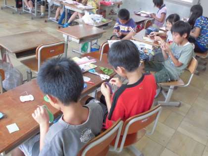手芸クラブでは、マスコット人形の製作。大変集中していて、話し声は聞こえません。