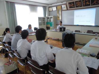 若い先生がたに期待することや、教師の仕事についての話などしました。そして、現在担任している先生からも直接話を聞くのが一番いいだろうと考え、6年の先生に講義をしてもらいました。子どもたちが大好き、子どもたちと共に学び合いたいと願い努力する先生になってもらいたいなあと思います。